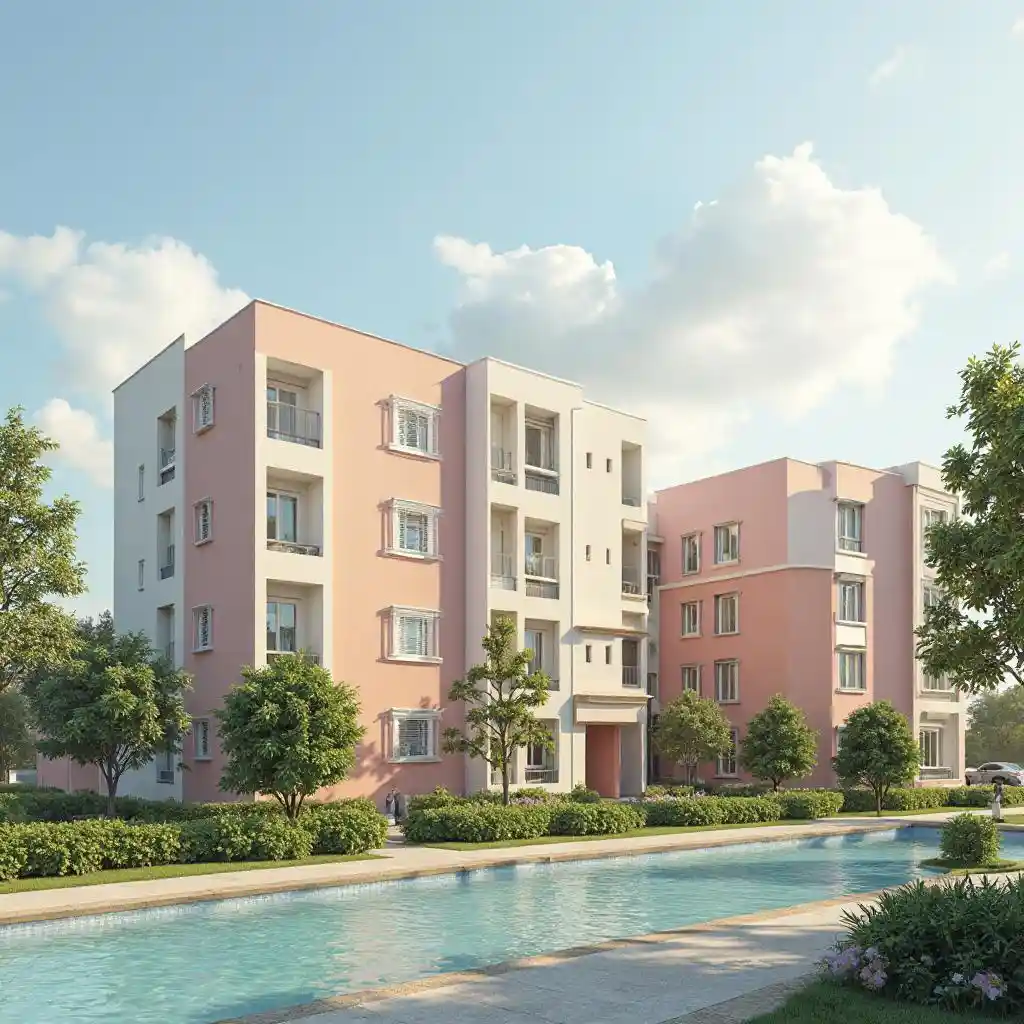 The new residential complex is painted in pastel. It represents comfort, service and relaxation.