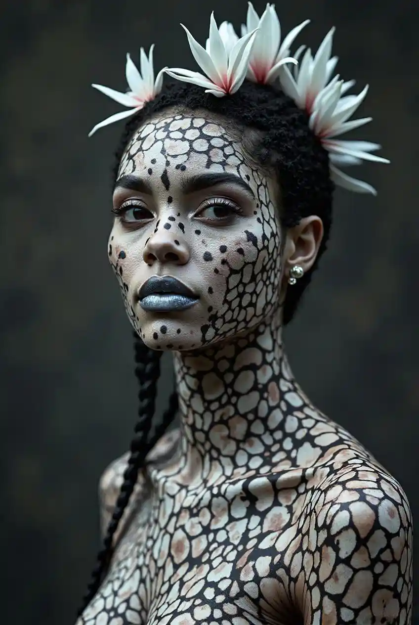 Surreal Fashion: Woman with Patterned Tribal Skin