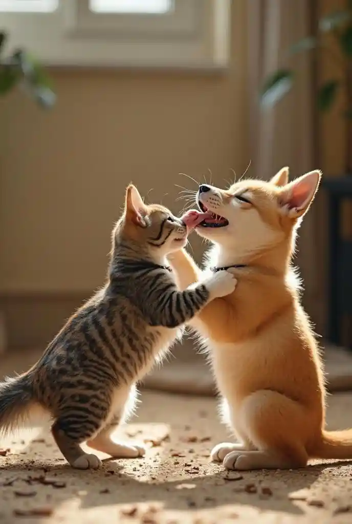 CamilaTake professional photos with natural light、Pheasant pattern cat and Shiba Inu are playing with each other