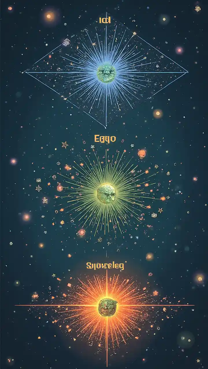 Illustration of psychodynamic perspective with id, ego, and superego as human components