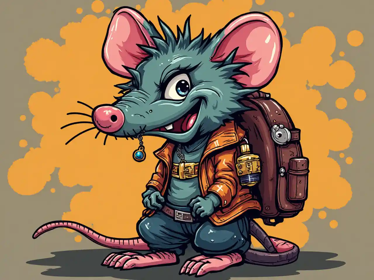 Bold cartoon rat with punk rock style and rebellious attitude