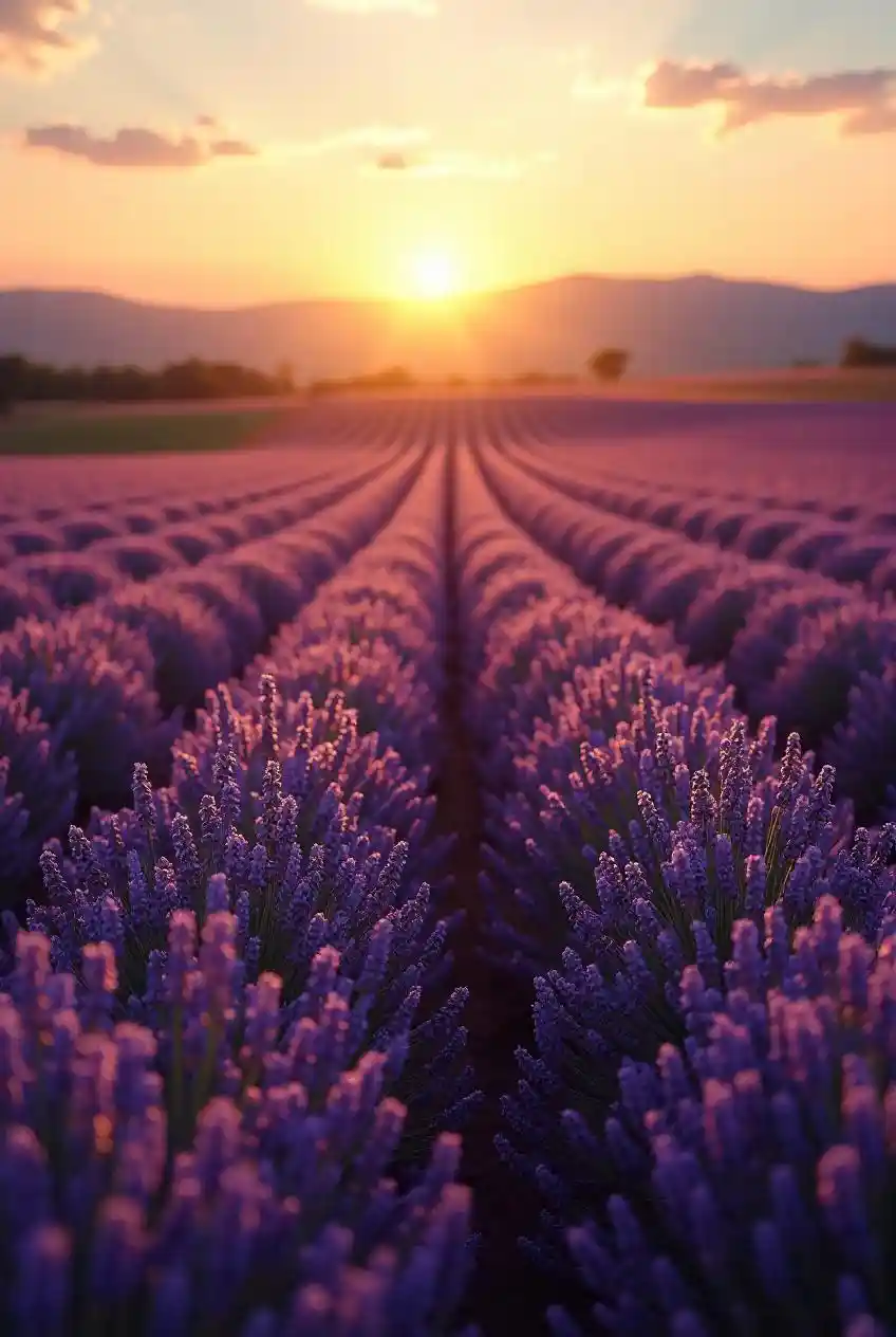 RobinAn endless lavender field, dancing in the breeze under a setting sun.