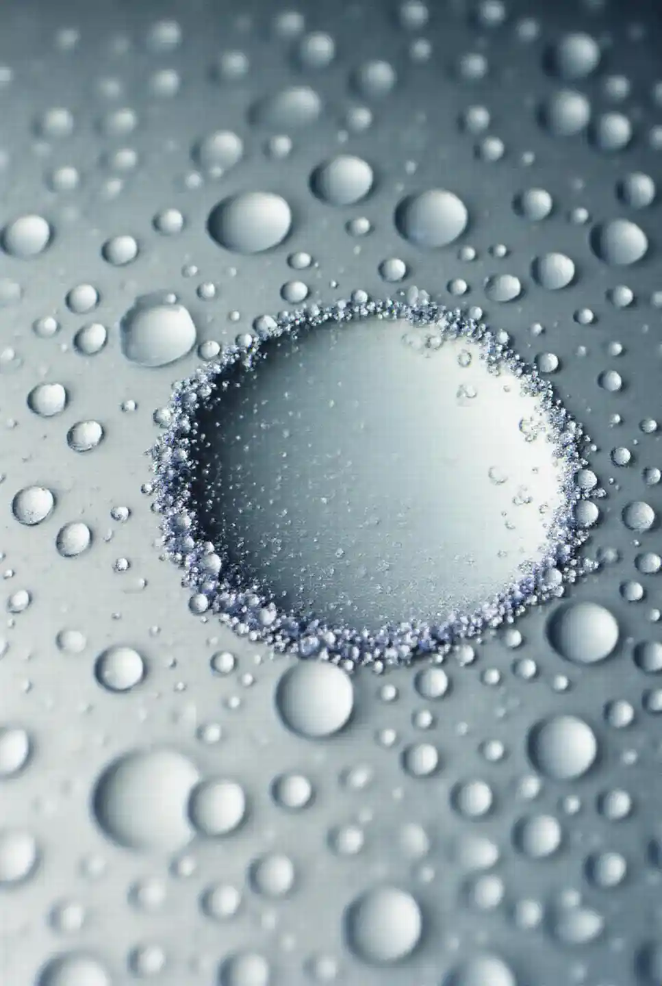 {{A ((spectacular)) depiction of {((a crystalline micro-world hidden within a single raindrop))}}} with {((geometric ice formations and reflective surfaces acti