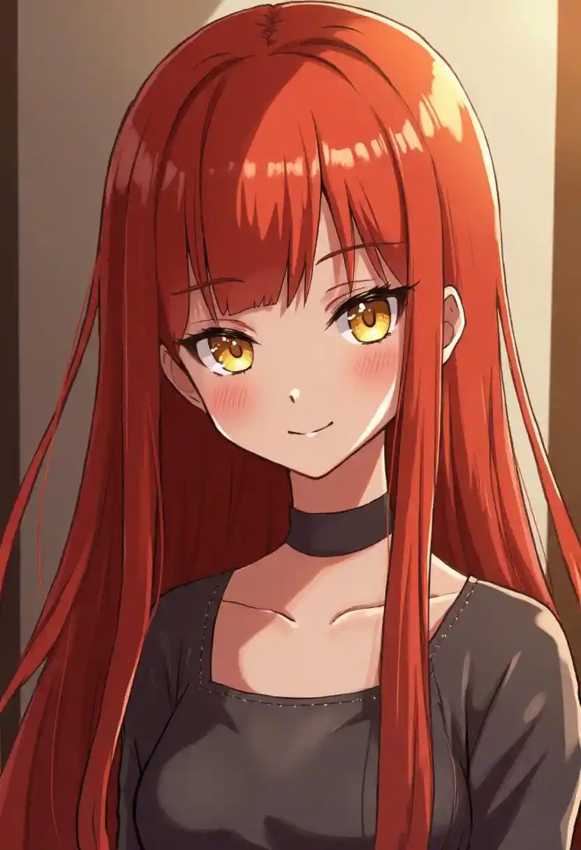Jocelyn1 woman , golden eyes , very long hair , long sidelocks, red hair , petite , very cute , beautiful ,Straight hair, cool, handsome, hair between eyes, large bre