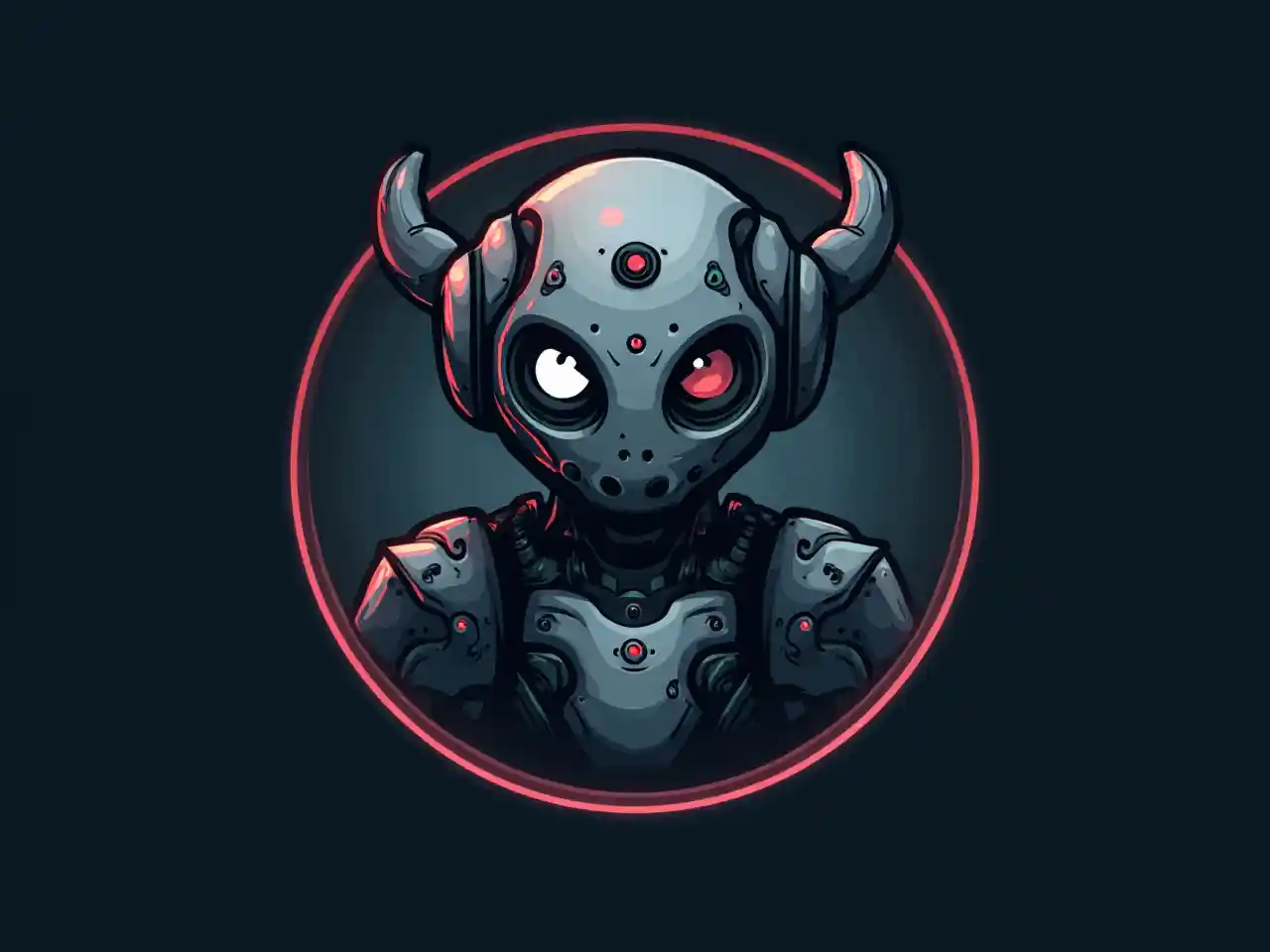 A logo for my gaming brand. A robot looking like monster in a circle logo