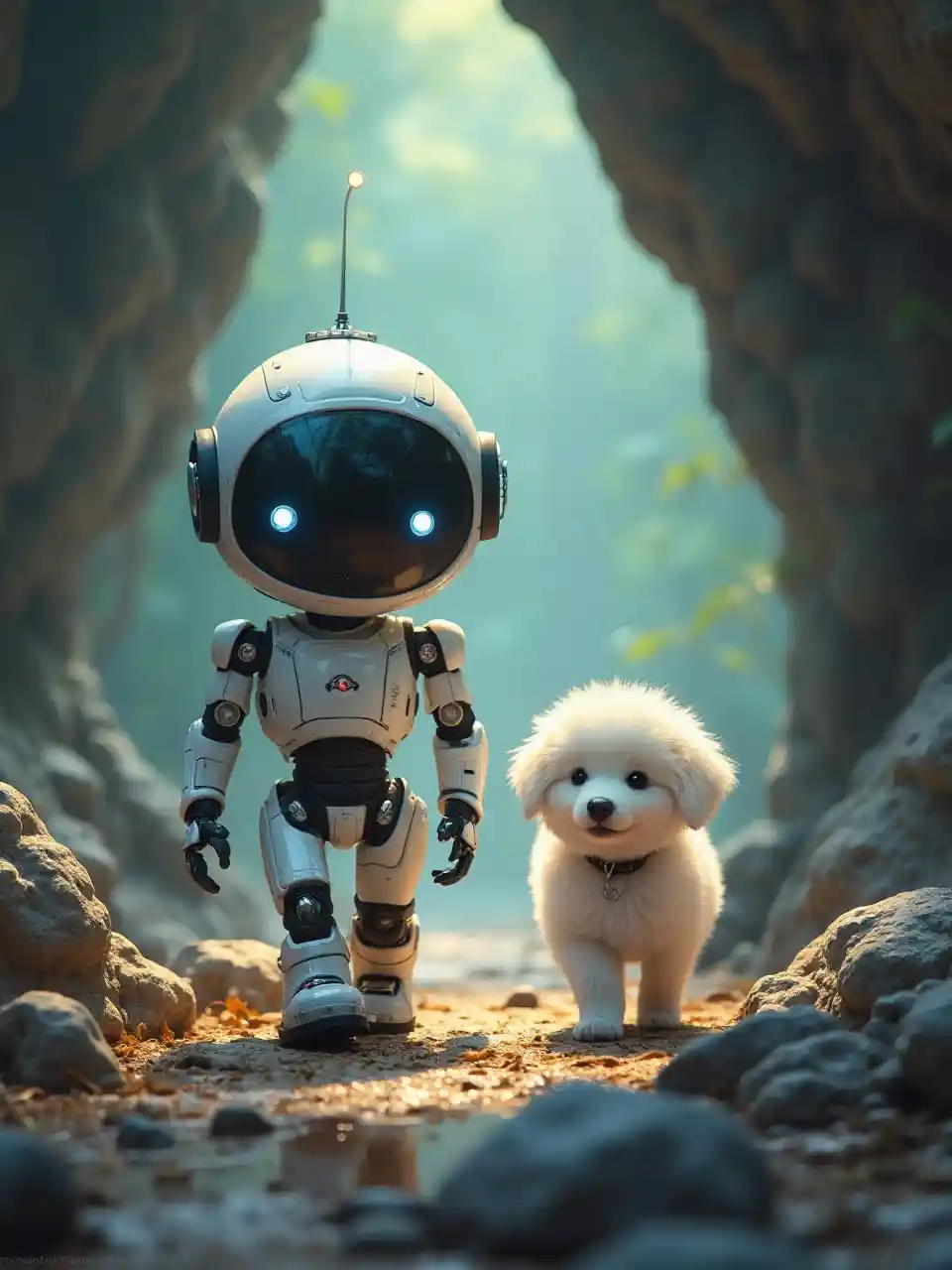 Charming Adventures of Robot and Puppy in Enchanted Cave