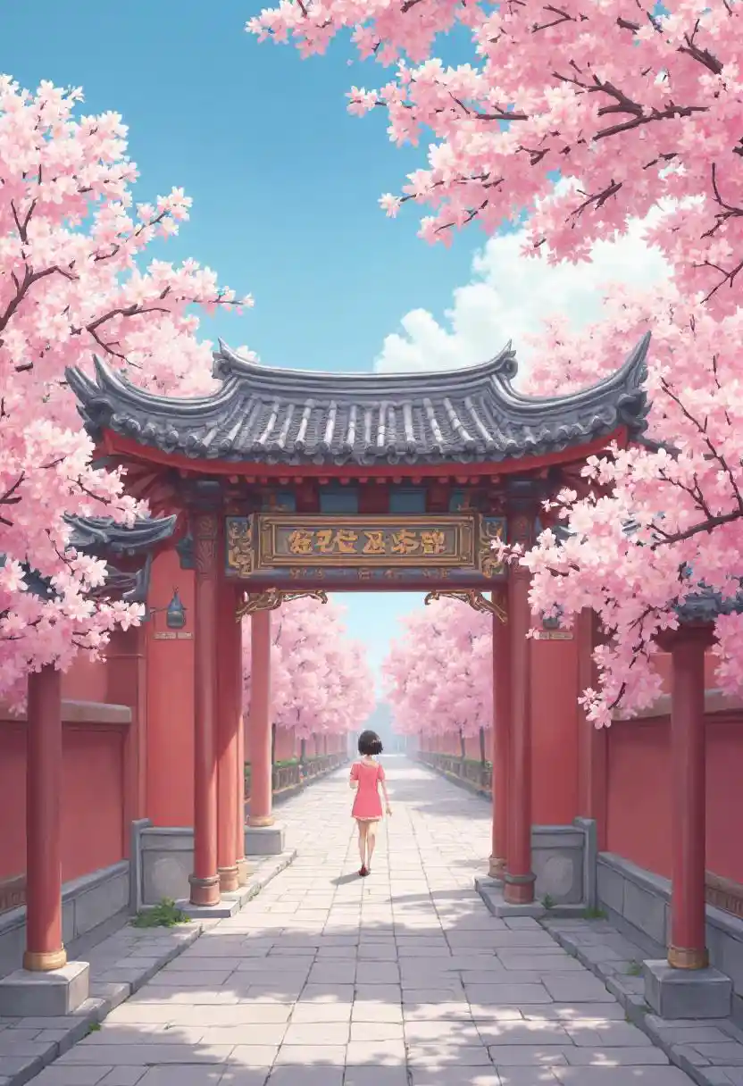 HarperRoof,ancient Chinese architecture,masterpiece,best quality,high quality,loli,chromatic_aberration,Light pink Theme,//1girl,cherry blossoms,Foot ring,foot bell,b
