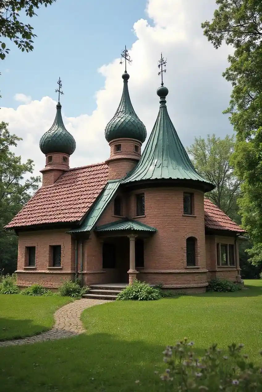 Russian dachas, with onion domes flavored with folklore.