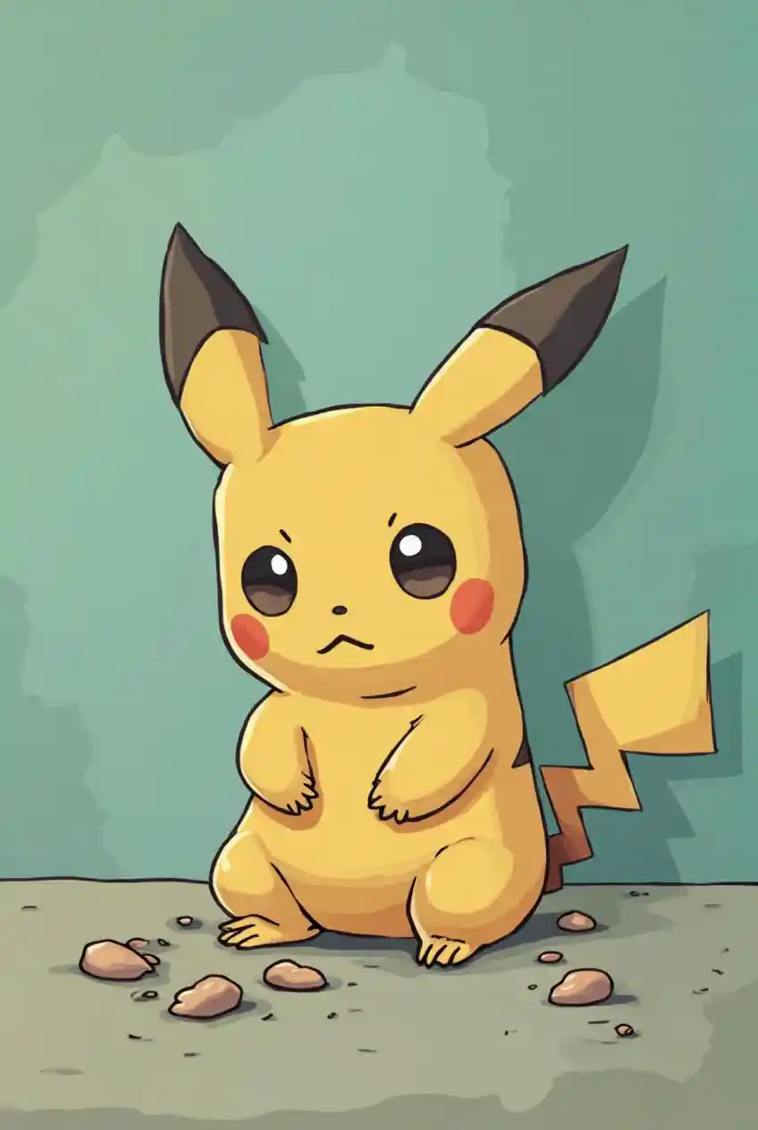 MilaA cute depressed Pokemon doing hard labor, minimalist geometric composition