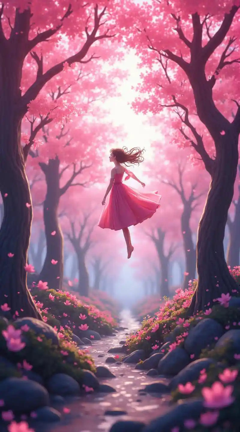 sakura princess flying in the middle of glowing sakura trees, epic, aesthetic, game scenery