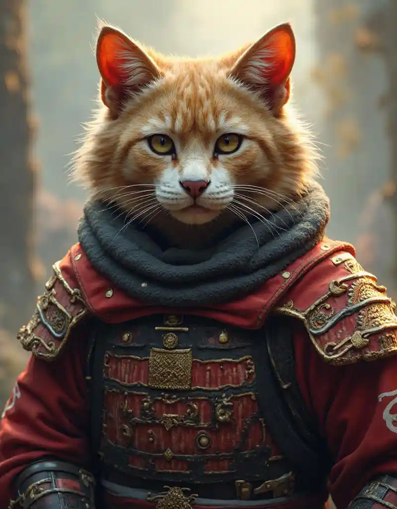 Levimasterpiece, Best Quality, high resolution, 8k,( authentic, photo authentic: 1.3),wallpaper, 2There is a head cat samurai and a dog knight, There is a, Under t