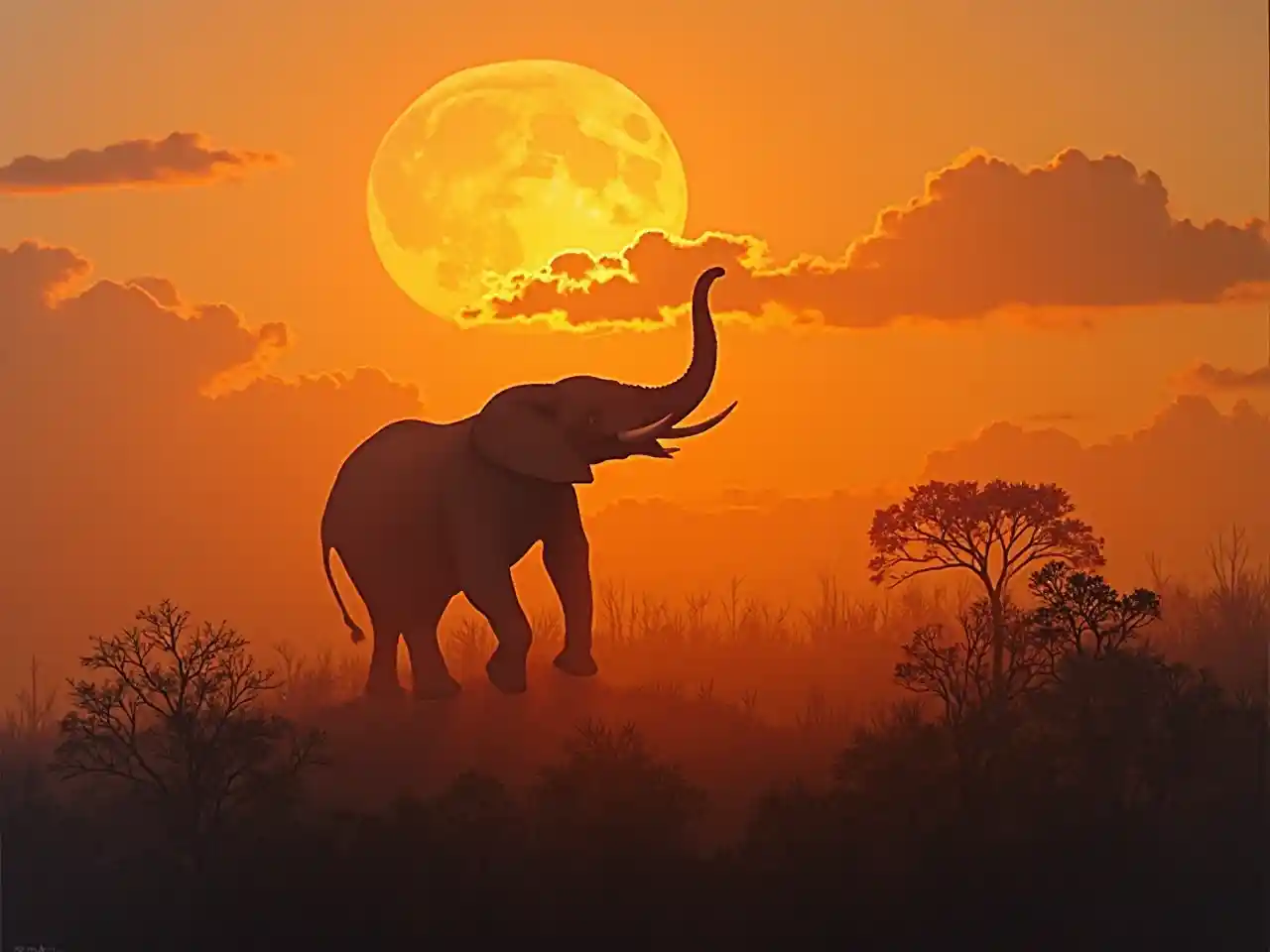A Stunning Double Layer Painting of African Savanna Sunset