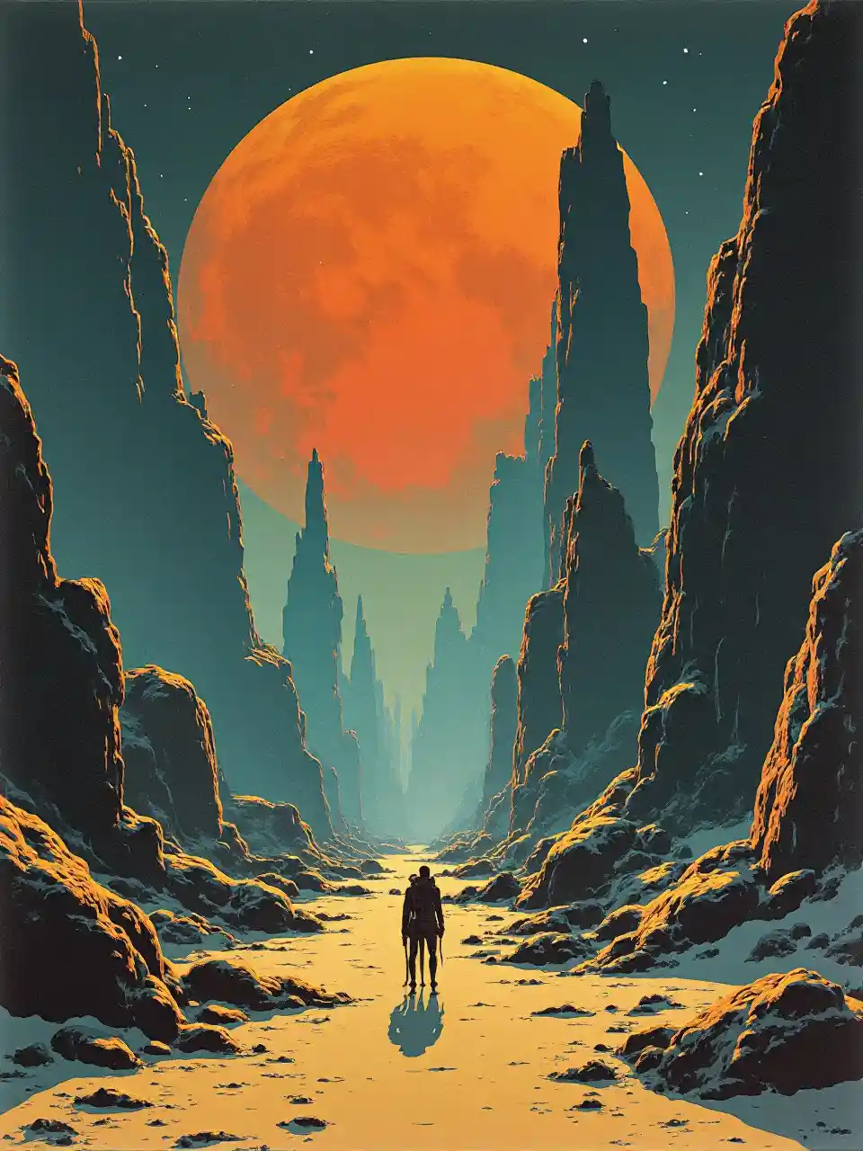 design sci-fi images in 1970s art style