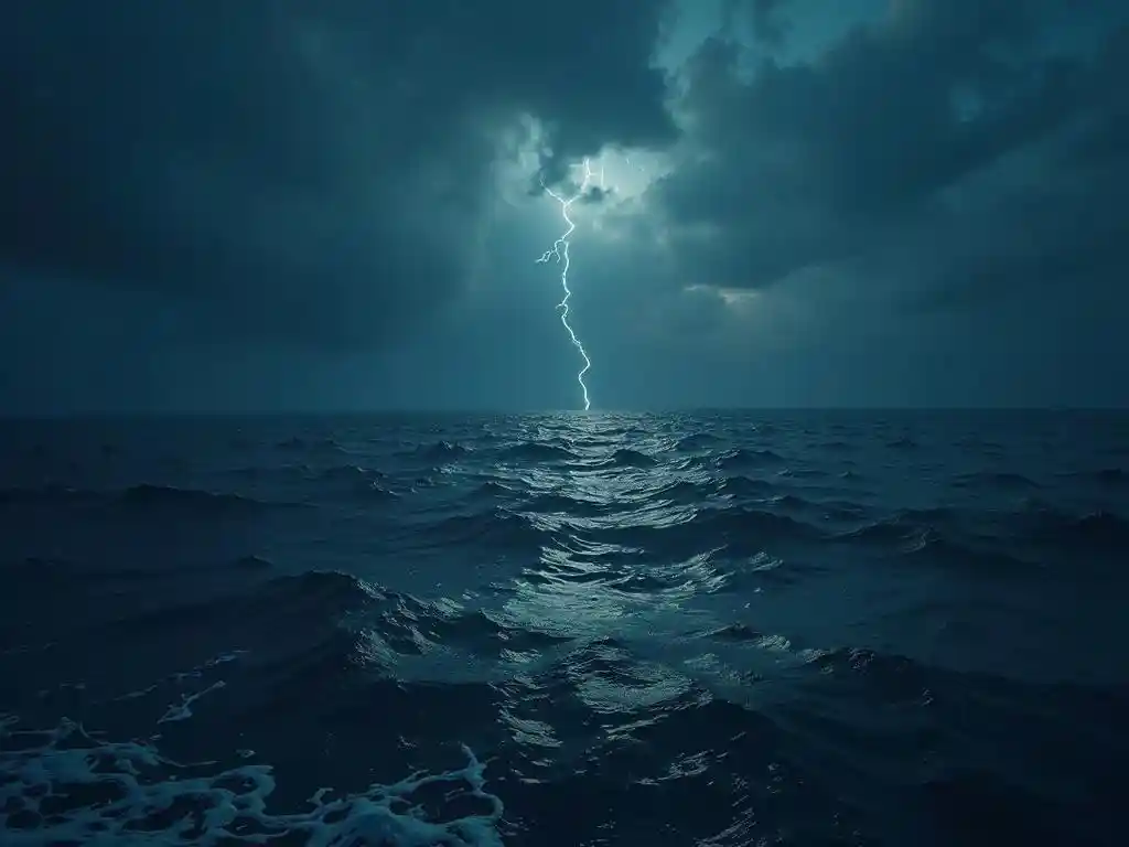 Oceanic Tapestry: Dim Glow in Night Darkness