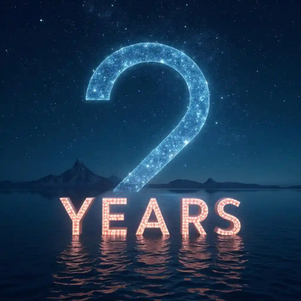 starts in the night sky form the word "SEAART", "2", "YEARS", best quality, 8K, high resolution, masterpiece, ultra-detailed, realistic, photorealistic, photo-r