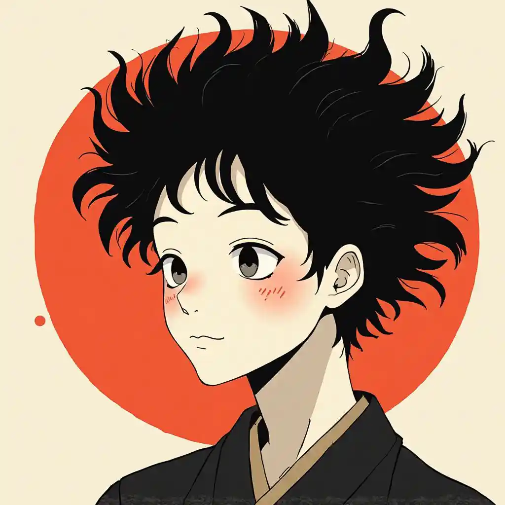 WilliamCreate a Bauhaus-style portrait of Senku Ishigami, (senku ishigami). Use geometric abstraction to depict his iconic wild hair and thoughtful expression—circles,
