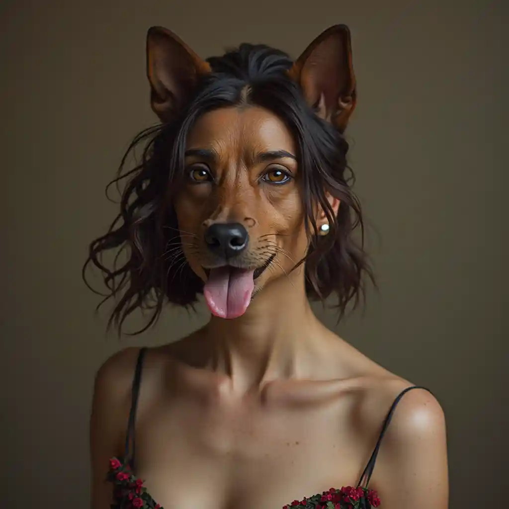 Woman on her transformation into a sexy dog #face of dog with a woman’s body #looking sensuously beautiful#(((full body image)))