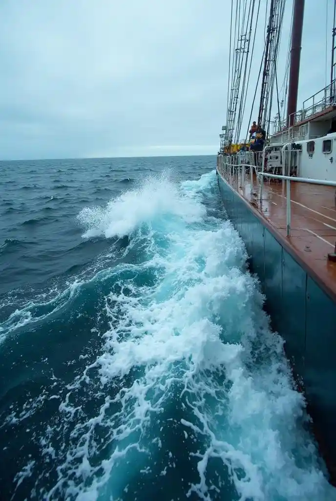 Jonathan(8k) , ( details) , ( angle looking at the ocean from above the ship {x} a ship traveling through the raging Strait of Magellan :1 . 2 )) , ( ( ( splashes on th