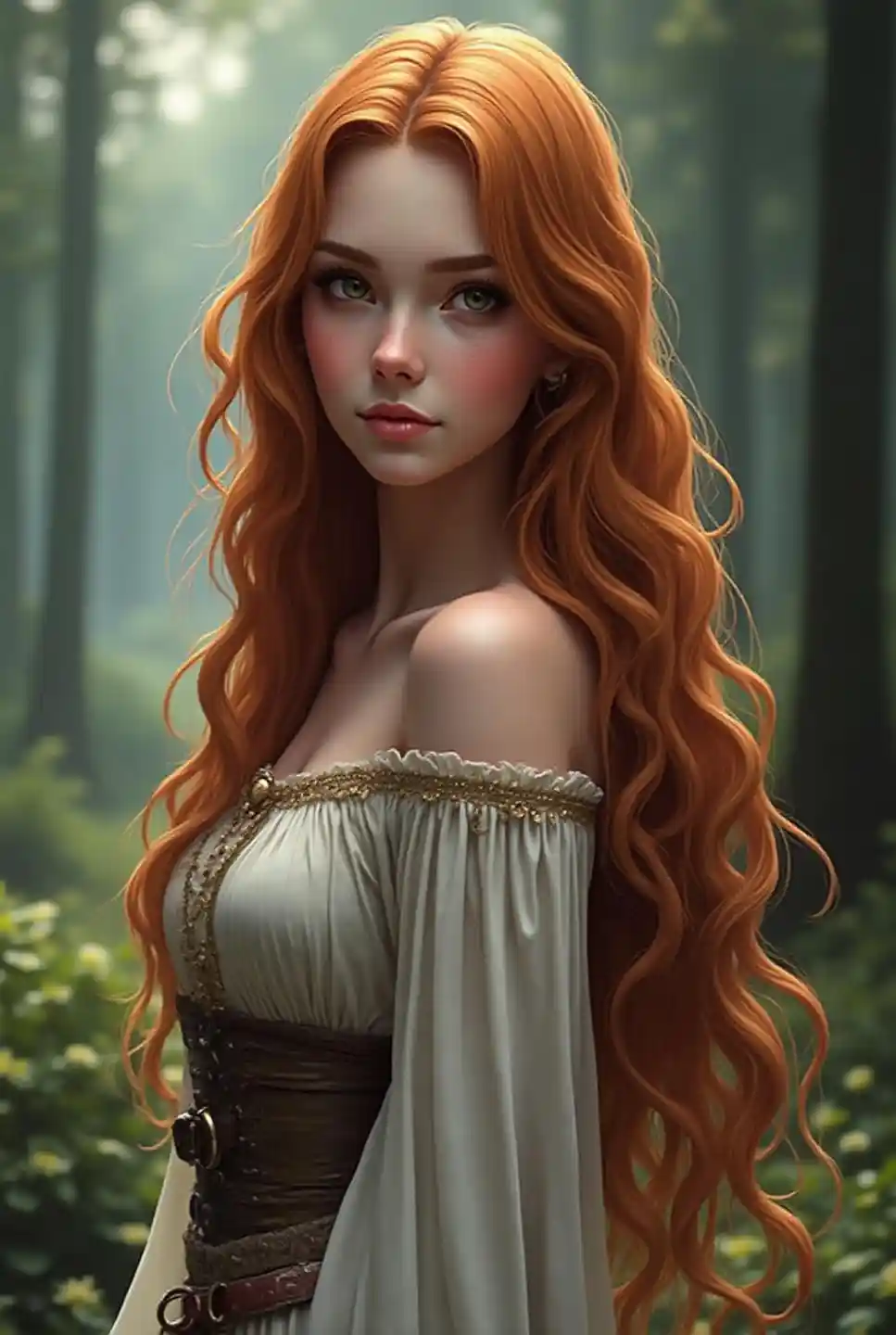 Grace8k photorealistic fantasy artwork, a breathtakingly beautiful young woman of Slavic ethnicity, aged 20-25, with long, flowing auburn hair cascading down her bac