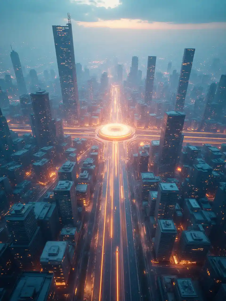 At the city’s core, a luminous central hub radiates connectivity, linking each district through a network of ultra-fast maglev transit routes and energy-efficient smart roads. Every element—architecture, technology, defense, and culture—is designed to push the boundaries of what a city can be, making it not just smart and secure, but the best city on Earth., sci-fi concept art