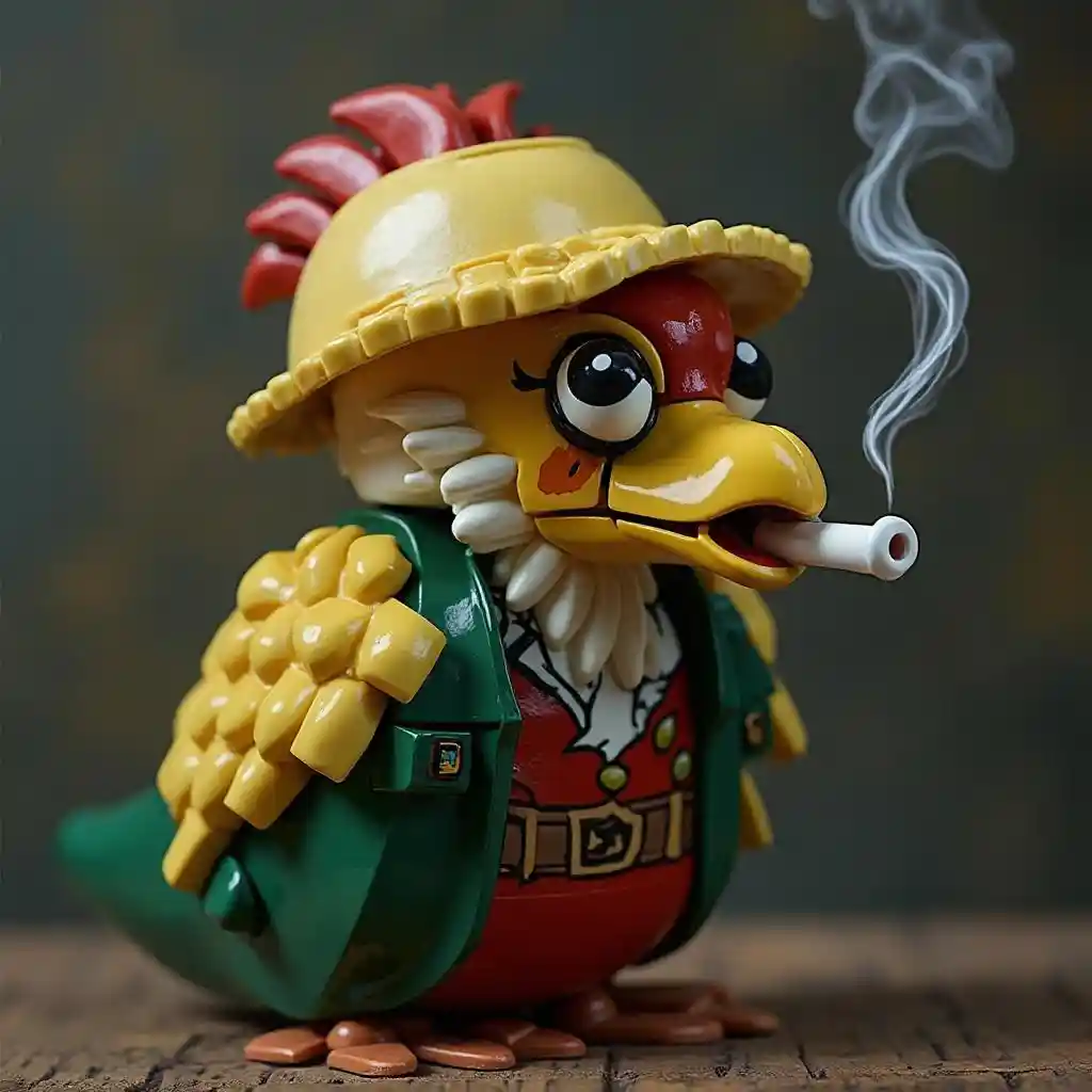 in stile lego, metti un uccello che si fuma una sigaretta e si deve vedere solo la faccia