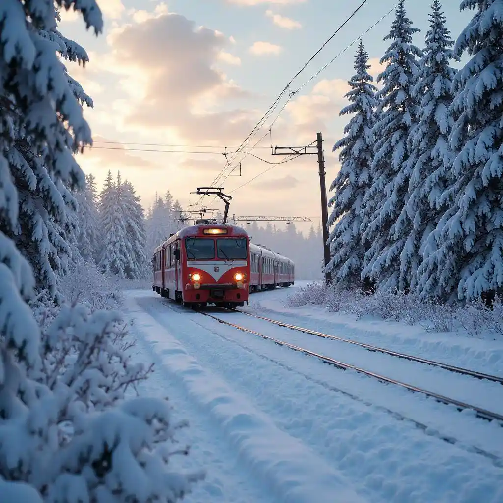 Train snow saunset