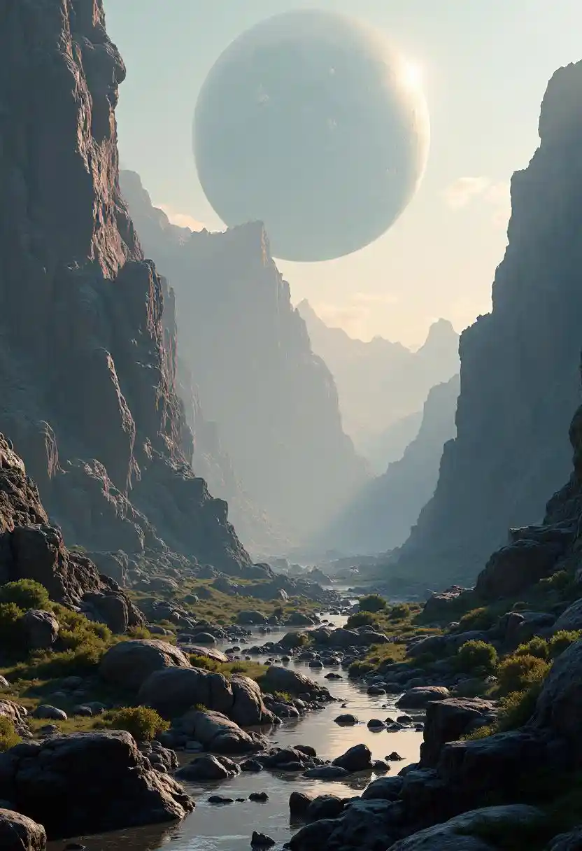 Sci-Fi Space Colony Landscape with Alien Ecology