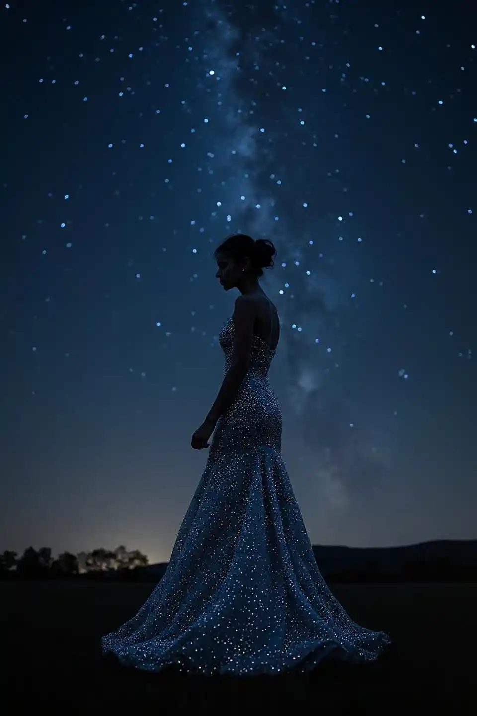Starry Silhouette of an Elegant Woman