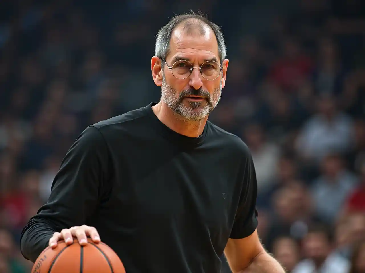 portrait of Steve Jobs playing basketball, sports photography