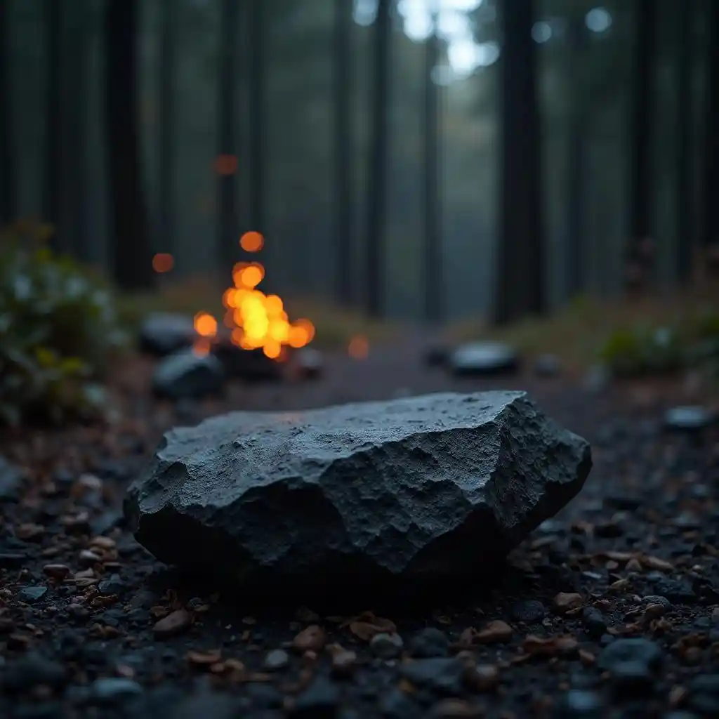 Black Stone and Dark Forest with Fire Sparks