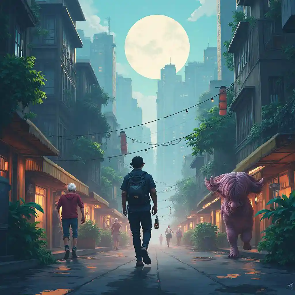 Urban jungle, street races with magical beasts, echoing urban fantasy anime vibes.