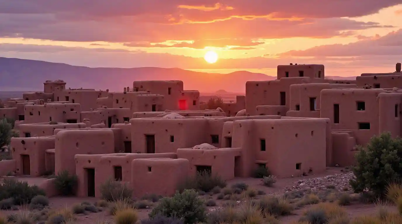 Adobe Pueblos in New Mexico at Sunset