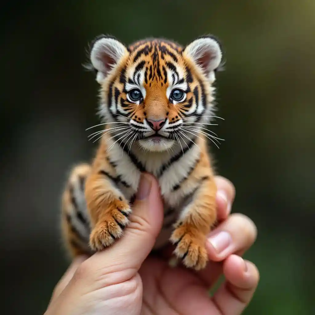 Tiny Tiger Cub on Human Finger