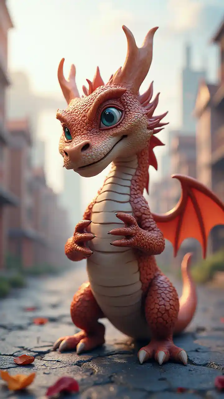 ChloeSuper toon dragon wood 3d with rgb color harmony on white space city background