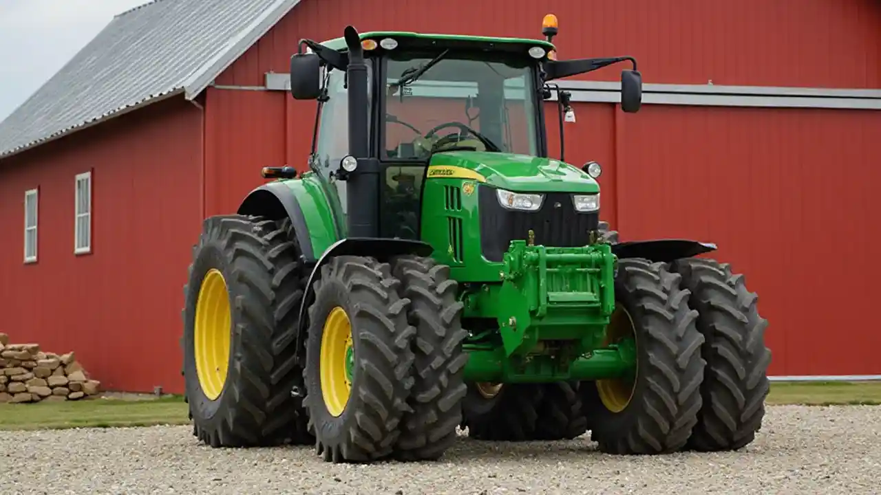 A Green International Tractor Parked by a Red Barn