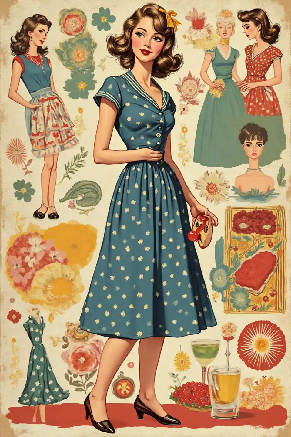 Retro Collage Revolution Women's Fashion Magazine Cutout VINTAGE MATERIAL (colorful) 70America waitress
