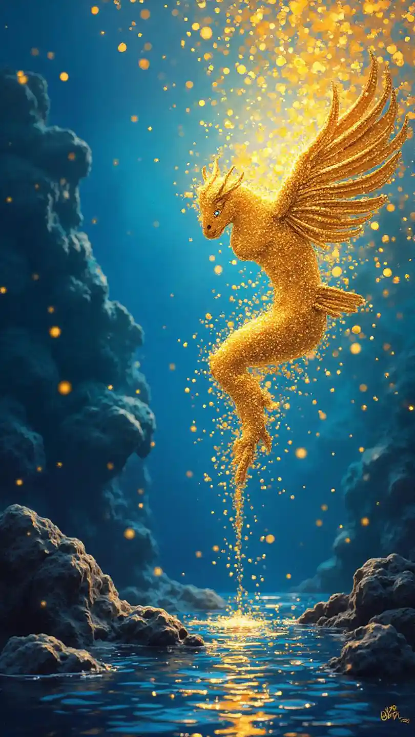 bright blue and sparkling gold、2 colors、Visual Arts、Dripping、Shine、美like、beautiful、god々like、