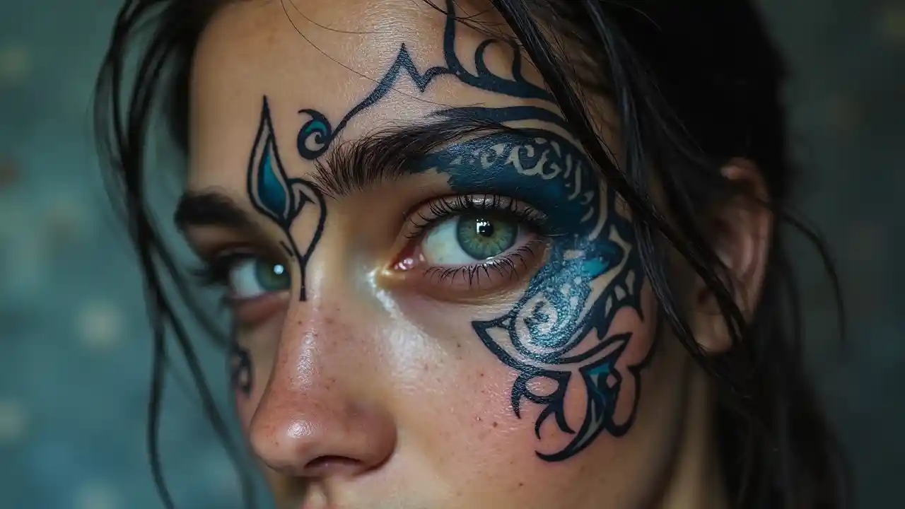blue eye warrior tribal tattoo girl