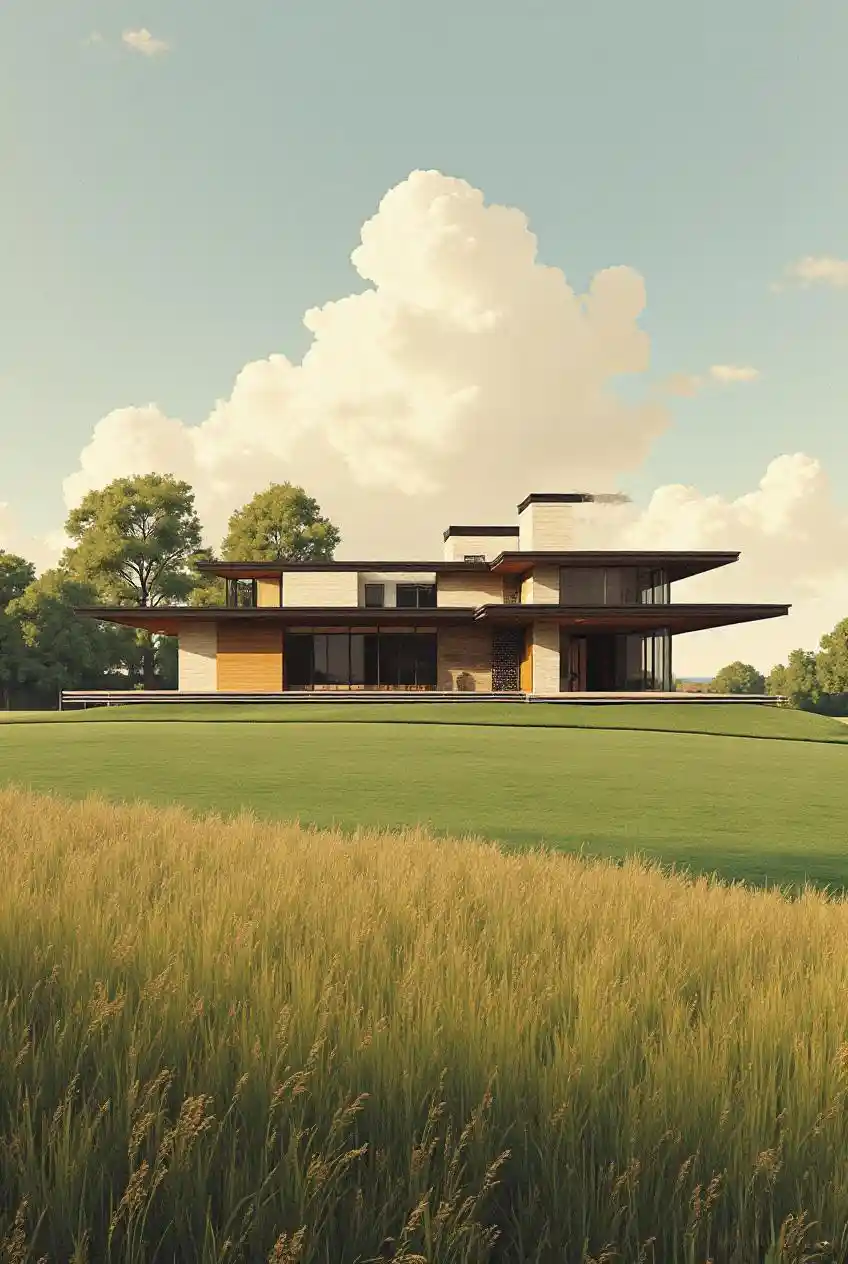 A Frank Lloyd Wright-inspired prairie house, blending horizon lines.