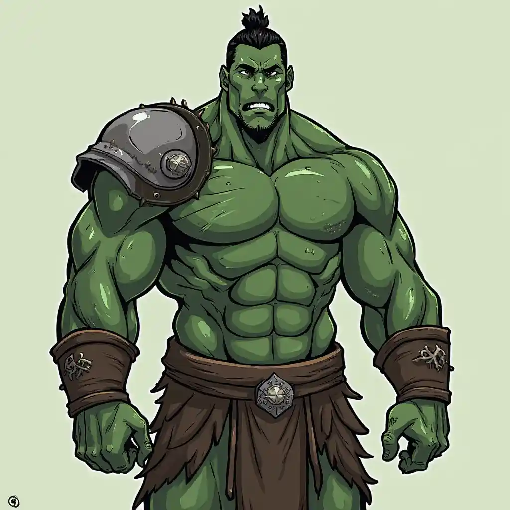 Mezzo orco barbaro pelle verde e cartoni animati sul lato più sottile →