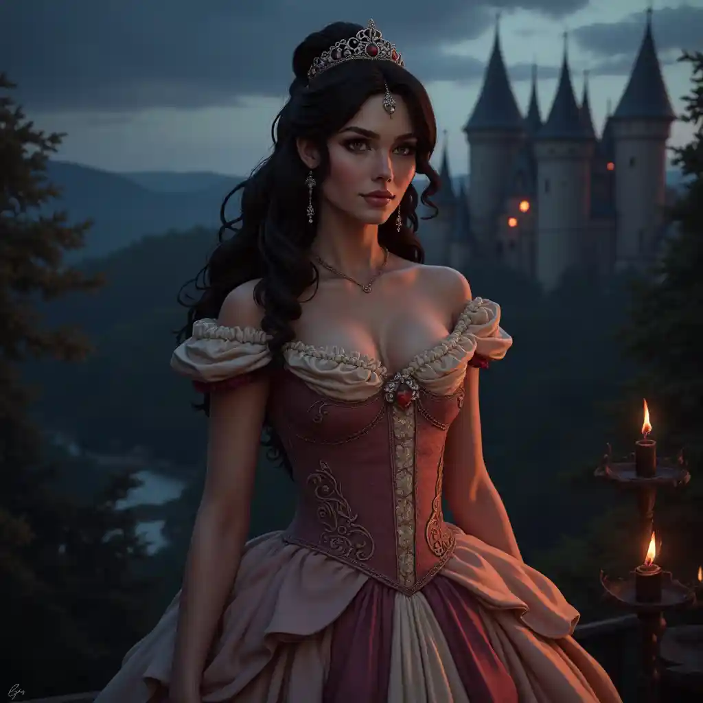 AvaAria Giovanni in un vestito vittoriano, sfondo castello, a lume di candela