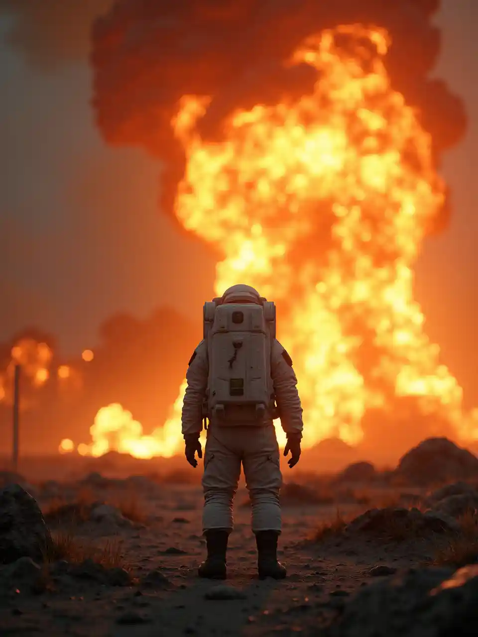Astronauta iper-reale nel fuoco della Palestina apocalittica