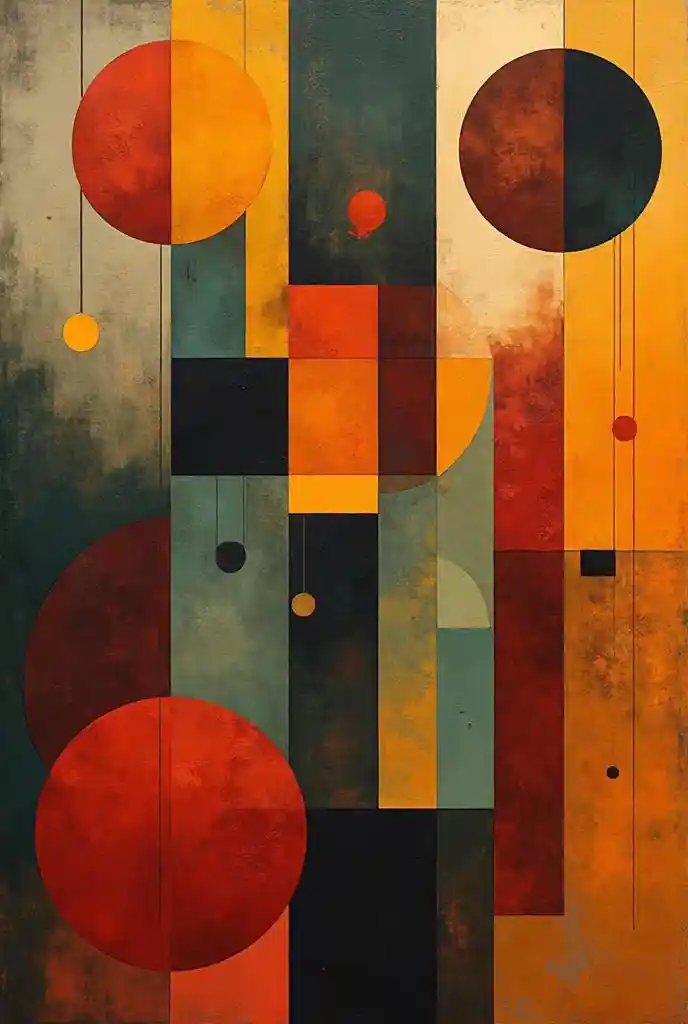 (migliore qualità, 8K, alta risoluzione, capolavoro: 1.2), ((Arte in stile Paul Klee), arte digitale in stile Bauhaus, composizione astratta geometrica, messa a fuoco nitida
