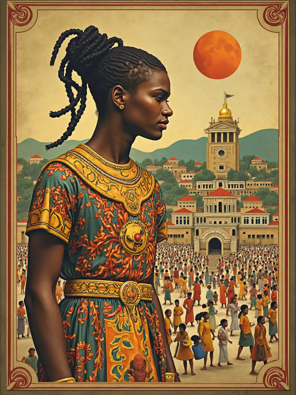 Voglio che disegni un poster sull'epoca d'oro del regno del Benin. Potete includere: risultati, edifici, governanti famosi, eventi significativi e le ragioni del suo declino. Potete anche includere dettagli dal diario di Oluadah Equiano. - Grazie