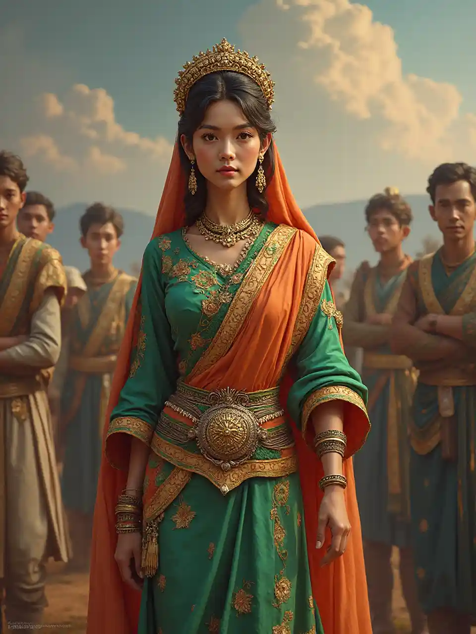 OliviaUna donna di 40 anni con un bell'abito biondo che ha un bel viso e un vestito di oro