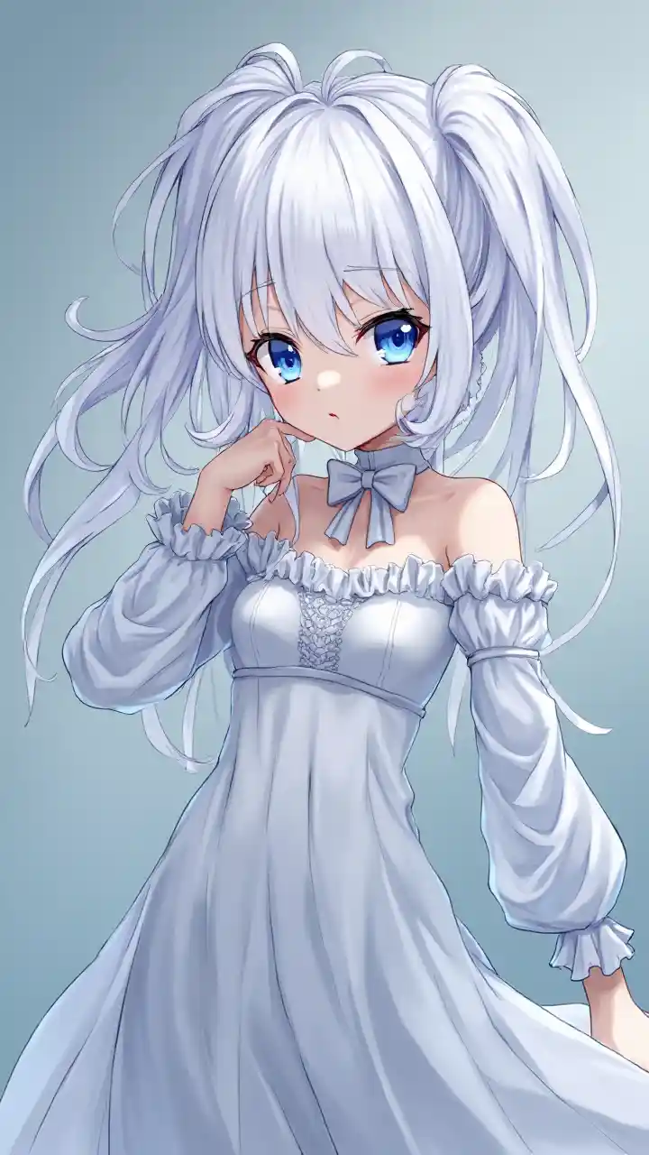 NathanUna ragazza con gli occhi azzurri e capelli bianchi e vestito lungo