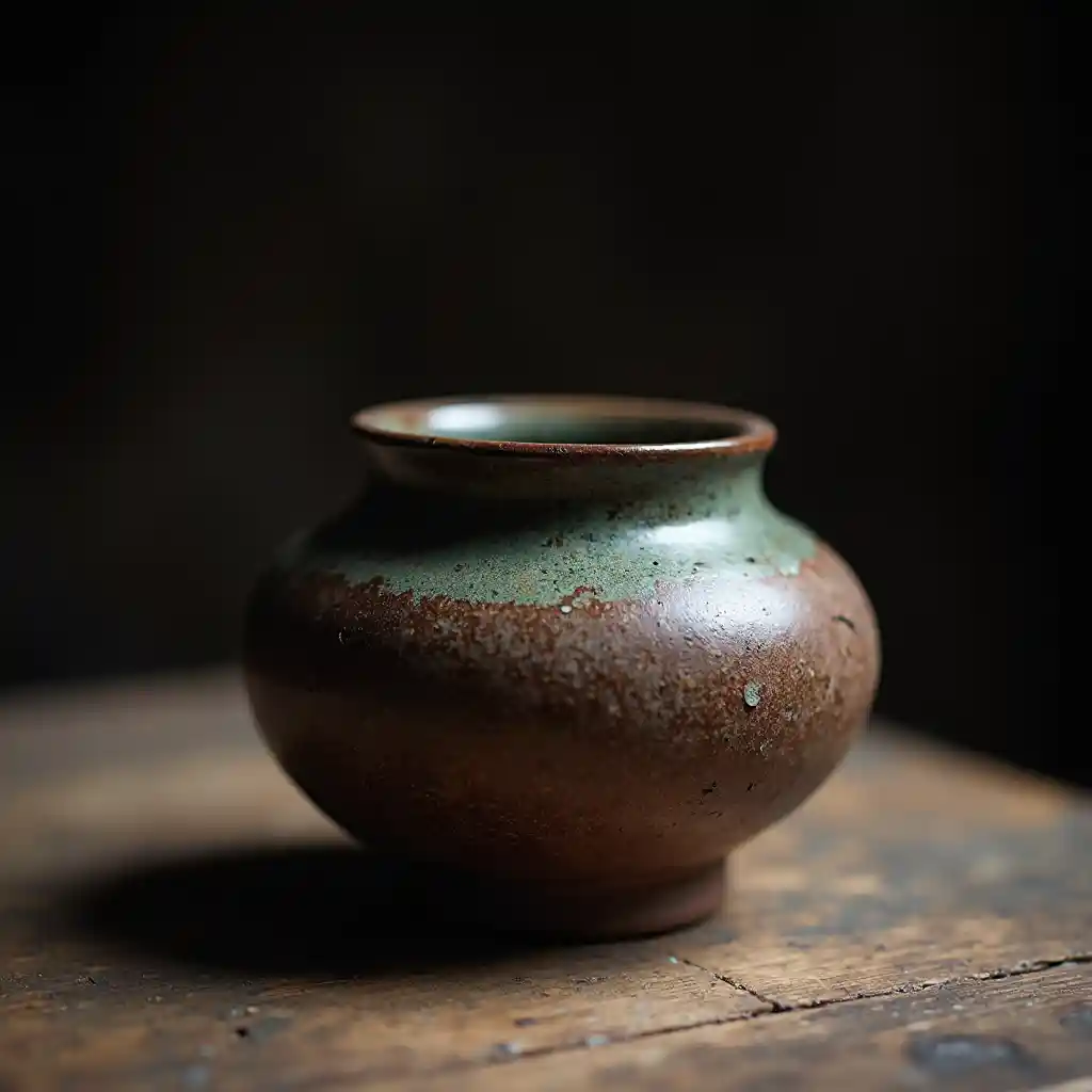 Scarlettantico vaso cinese di piccola argilla e vetri, atmosfera profonda, foto realistiche