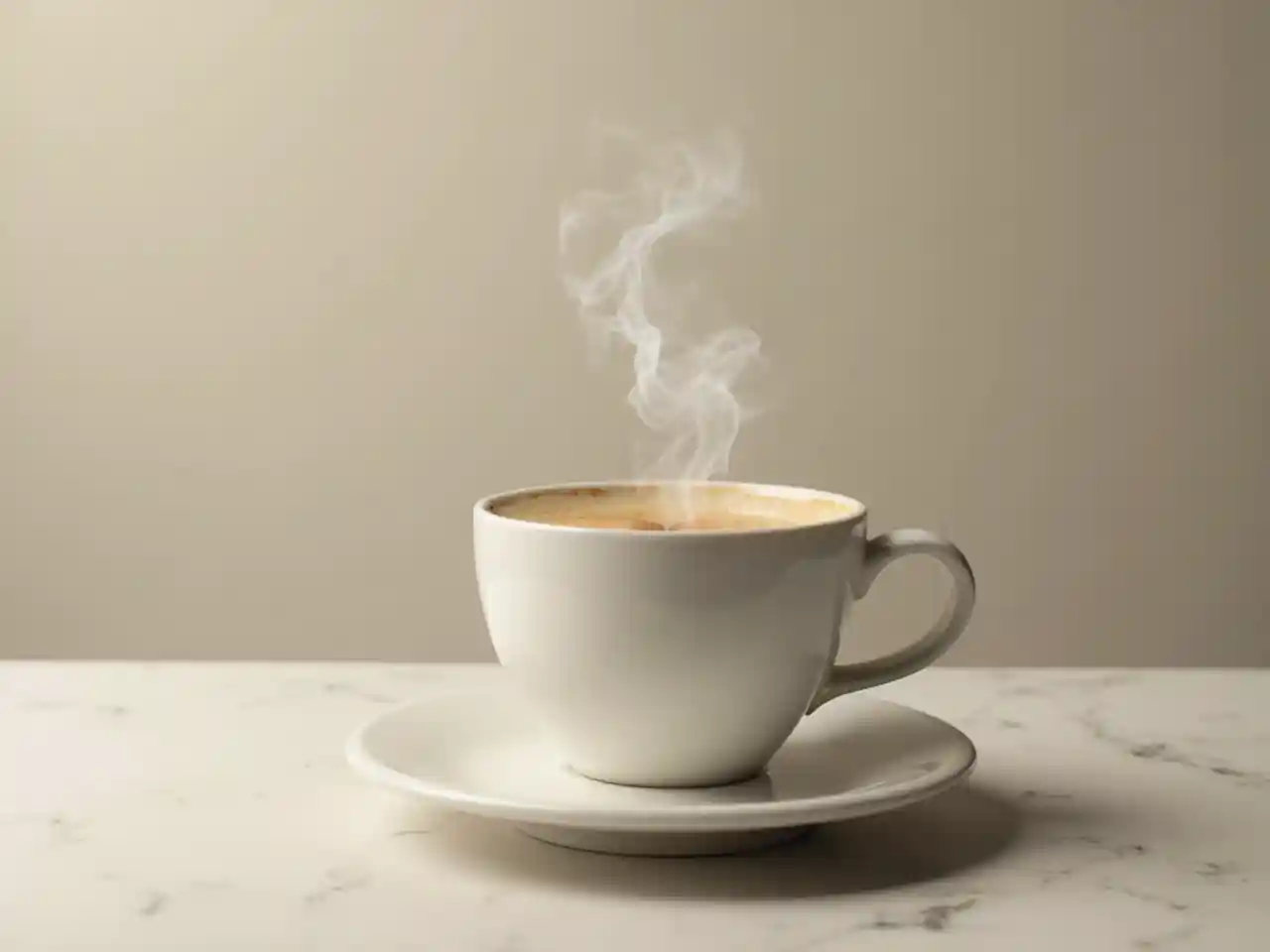 Harpertazza di caffè su sfondo neutro con il vapore che sale dalla tazza