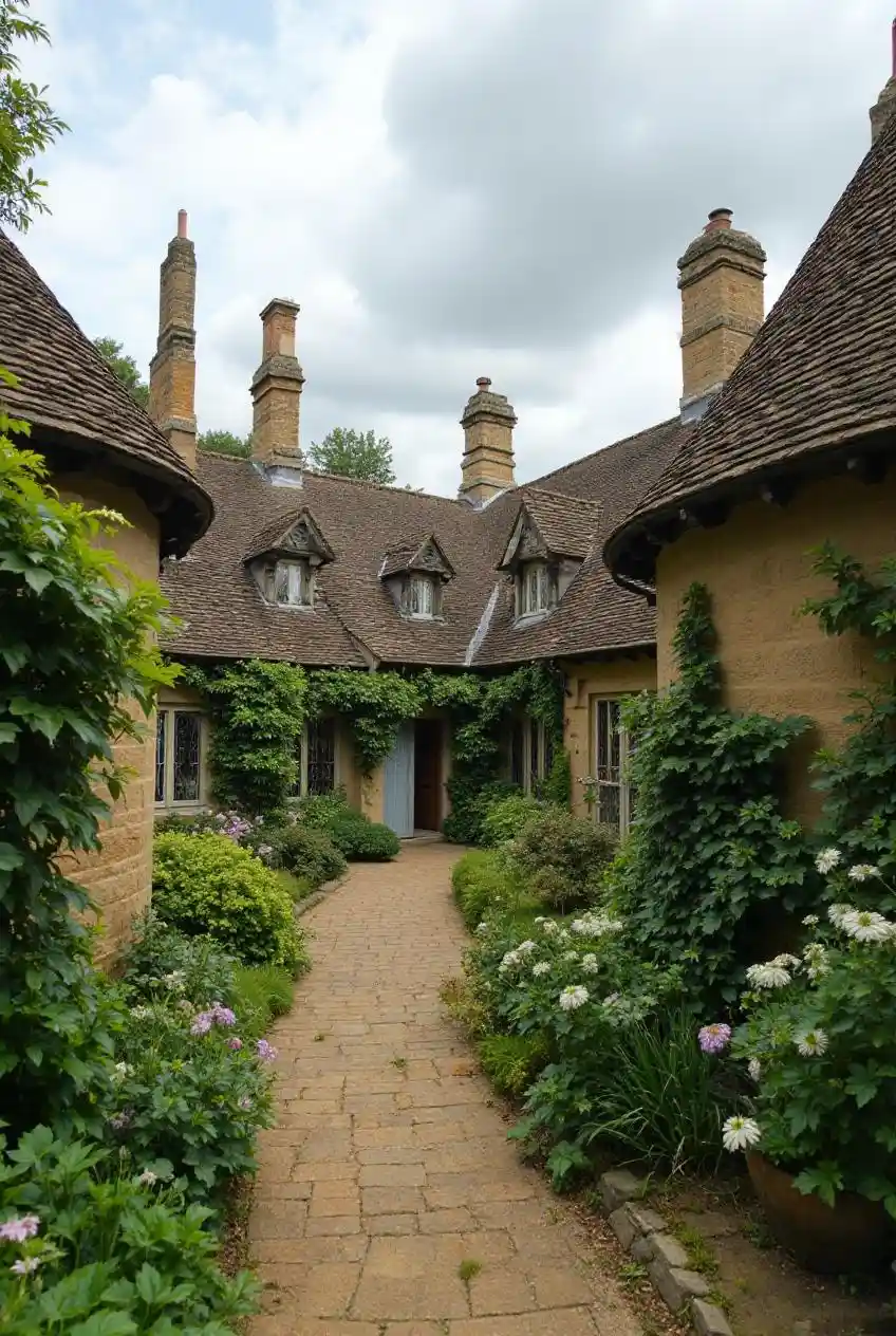 Case in campagna nei Cotswolds, i tetti curvi come pergamene.