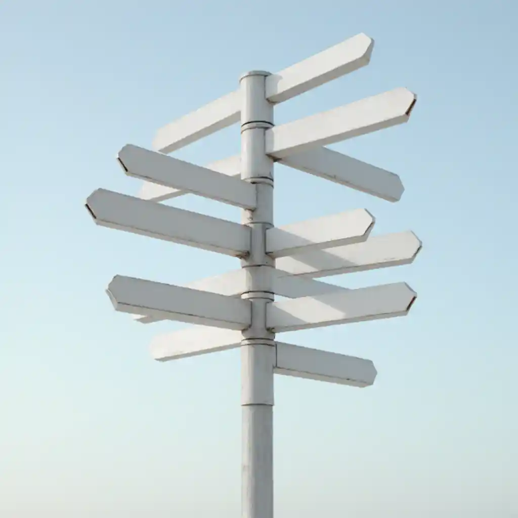 Segnale stradale vuoto e in bianco che indica diverse direzioni